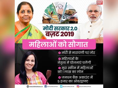 महिलाओं को सौगात: नारी से नारायणी पर जोर, महिलाओं के नेतृत्व में योजनाएं चलेंगी, मुद्रा स्कीम में महिलाओं को 1 लाख का लोन, जनधन बैंक अकाउंट में 5 हजार का ओवरड्राफ्ट