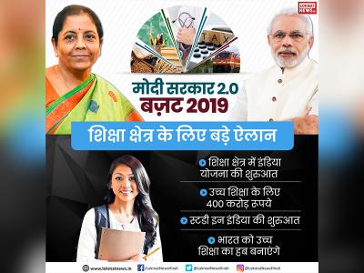 शिक्षा क्षेत्र के लिए बड़े ऐलान: शिक्षा क्षेत्र में इंडिया योजना की शुरुआत, उच्च शिक्षा के लिए 400 करोड़ रूपये, स्टडी इन इंडिया की शुरुआत, भारत को उच्च शिक्षा का हब बनाएंगे।
