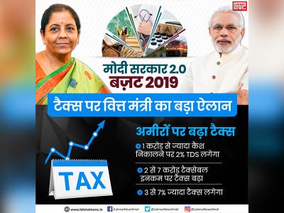 टैक्स पर वित्त मंत्री का बड़ा ऐलान: अमीरों पर बढ़ा टैक्स, 1 करोड़ से ज्यादा कैश निकालने पर 2% TDS लगेगा, 2 से 7 करोड़ टैक्सेबल इनकम पर टैक्स बढ़ा, 3 से 7% ज्यादा टैक्स लगेगा।