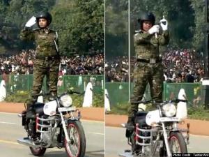 1 / 7राजपथ पर करतब दिखाते भारतीय सेना के जाबांज2 / 7गणतंत्र दिवस समारोह में पहली बार महिला बाइकरों ने दिखाए करतब3 / 7महिला टुकड़ी ने अभूतपूर्व करतब का प्रदर्शन किया।4 / 7पांच मोटरसाइकिलों पर 21 महिलाएं मानव पिरामिड बनाती हैं। सहायक उप निरीक्षक अनीता कुमारी वीवी इस गठन का नेतृत्व करती हैं।5 / 7त्रिशूल का गठन, जिसमें 3 एएलएच हेलीकॉप्टर शामिल हैं। यह पहली बार है कि “त्रि-सेवा संरचना” ले रहा है6 / 75 अपाचे हेलिकॉप्टरों ने उड़ान भरी। अपाचे पहली बार परेड में शामिल हुआ।7 / 7विंग कमांडर एसके चौहान ने 'विक' गठन का नेतृत्व किया, जिसमें तीन डोर्नियर विमान शामिल हैं। अन्य दो विमानों के कप्तान स्क्वाड्रन लीडर विकास कुमार और स्क्वाड्रन लीडर अभिषेक वशिष्ठ हैं।