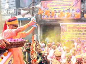 1 / 10UP CM Yogi Adityanath Celebrates Holi 2025: उत्तर प्रदेश के मुख्यमंत्री योगी आदित्यनाथ ने शुक्रवार को कहा कि दुनिया के किसी भी देश, किसी भी जाति, किसी भी धर्म में त्योहारों की इतनी समृद्ध परंपरा नहीं है जितनी सनातन धर्म में है और त्योहारों के माध्यम से भारत आगे बढ़ता है।2 / 10UP CM Yogi Adityanath Celebrates Holi 2025: गोरखपुर में पारंपरिक नरसिंह शोभायात्रा को संबोधित करते हुए आदित्यनाथ ने कहा, ‘‘दुनिया के किसी भी देश, किसी भी जाति, किसी भी धर्म में त्योहारों की इतनी समृद्ध परंपरा नहीं है, जिनकी सनातन धर्म में है। सनातन धर्म में हमारी आस्था है और आस्था ही त्योहारों की आत्मा है। त्योहारों के माध्यम से भारत आगे बढ़ता है।’’3 / 10UP CM Yogi Adityanath Celebrates Holi 2025: होली का एक ही संदेश है कि एकता से देश अखंड रहेगा। ‘एक भारत, श्रेष्ठ भारत’ की परिकल्पना पूरी होगी।4 / 10UP CM Yogi Adityanath Celebrates Holi 2025: सनातन धर्म का विरोध करने वालों ने प्रयागराज महाकुंभ के माध्यम से सनातन धर्म के साथ-साथ भारत का सामर्थ्य देखा है। 66 करोड़ से अधिक श्रद्धालु एक घाट पर जुटे और त्रिवेणी के महासंगम में महास्नान का आशीर्वाद प्राप्त किया। इसमें न तो जाति का भेदभाव है और न ही किसी क्षेत्र का।5 / 10UP CM Yogi Adityanath Celebrates Holi 2025:आदित्यनाथ ने वहां मौजूद लोगों को संबोधित करते हुए कहा, ‘‘वे कौन लोग हैं जो हमें विभाजित करना चाहते हैं? ये वे लोग हैं जिन्होंने राम मंदिर का विरोध किया था जो गो तस्करी में शामिल थे और गो हत्यारों को बढ़ावा देते थे और उन्हें सत्ता में भागीदार बनाते थे। ये वे लोग हैं, जो कहते थे कि भारत कभी भी 'विकसित भारत' नहीं हो सकता।’’6 / 10UP CM Yogi Adityanath Celebrates Holi 2025: देश और सनातन धर्म के प्रति उनकी मंशा जगजाहिर है। इसलिए, मैं आपसे कहने आया हूं कि हमें त्योहारों की परंपरा को आगे बढ़ाना होगा।7 / 10UP CM Yogi Adityanath Celebrates Holi 2025: भगवान राम ने हमें मर्यादा का मार्ग सिखाया है। जब हम मर्यादा के साथ आगे बढ़ेंगे, तो हम पवित्रता के साथ आगे बढ़ेंगे। हम स्वयं लक्ष्मण रेखा का उल्लंघन नहीं करेंगे।8 / 10UP CM Yogi Adityanath Celebrates Holi 2025: महाकुंभ का जिक्र करते हुए आदित्यनाथ ने दावा किया कि वहां छेड़छाड़ या लूट का एक भी मामला नहीं हुआ।9 / 10UP CM Yogi Adityanath Celebrates Holi 2025: एक भी ऐसी घटना नहीं हुई जिससे किसी सनातनी को सिर झुकाना पड़े। यह अद्भुत अनुशासन और मर्यादा हमें प्रयागराज ने दी है।10 / 10UP CM Yogi Adityanath Celebrates Holi 2025: सनातन धर्म का उद्घोष है कि ‘जहां धर्म है, वहां विजय होगी, वहां सत्य होगा। जितनी कठिन साधना होगी, उतना ही अधिक ज्ञान होगा।’’ शोभायात्रा से पहले मुख्यमंत्री होली मनाने के लिए साधु-संतों के साथ जमीन पर बैठे नजर आए। उन्होंने शोभायात्रा में लोगों पर फूल भी बरसाए।