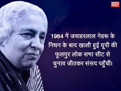 1964 में जवाहरलाल नेहरू के निधन के बाद खाली हुई यूपी की फूलपुर लोक सभा सीट से चुनाव जीतकर संसद पहुँचीं।