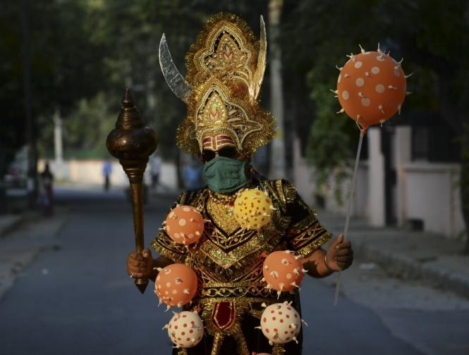 लॉकडाउन के बीच दिल्ली की सड़कों पर उतरे 'यमराज', लोगों को दे रहे हैं घर में रहने की सलाह