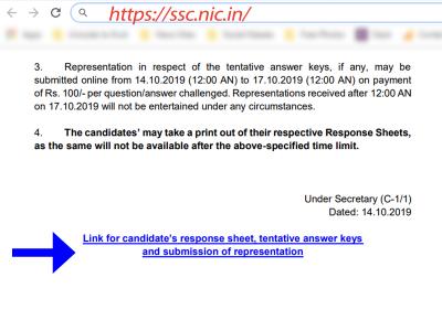 इसके बाद अभ्यर्थी रिस्पांस शीट, टेंटेटिव आसंर की और सबमिशन ऑफ रिप्रजेंटेशन के लिंक पर क्लिक करें।