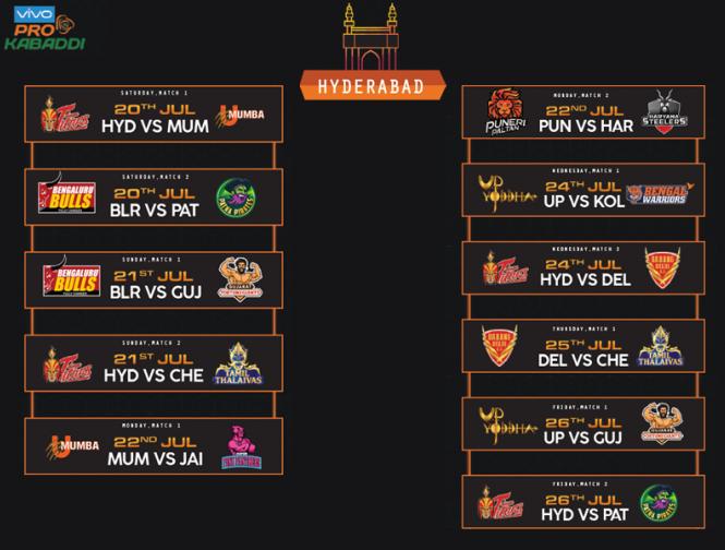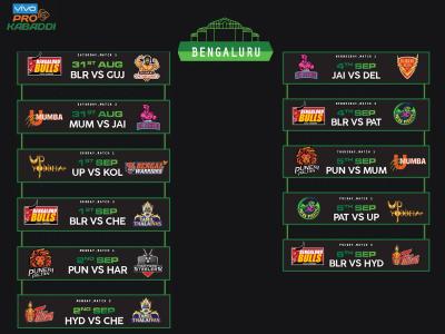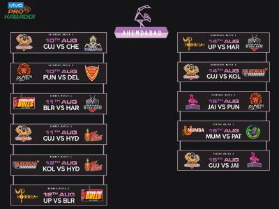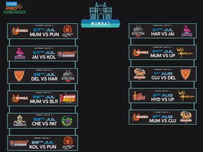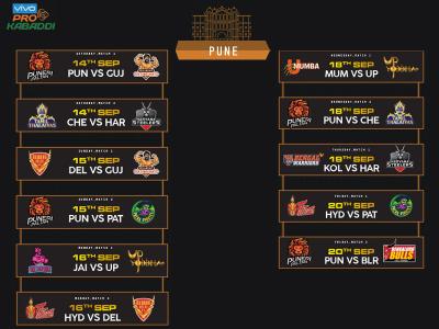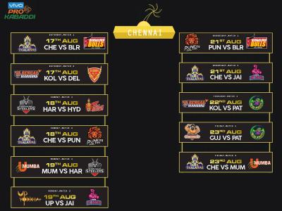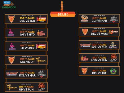 प्रो कबड्डी लीग के सभी मैच शाम 7:30 और 8:30 बजे खेले जाएंगे।