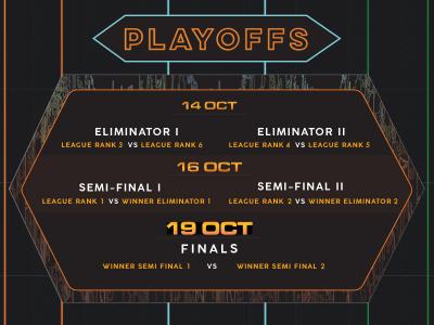 लीग स्टेज में टाॅप पर रहने वाले छह टीमें प्लेऑफ के लिए क्वाॅलीफाई करेंगी।