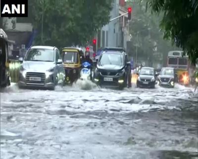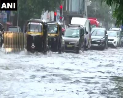 मुंबई में मूसलाधार बारिश की वजह से लोग परेशान होते नजर आ आएं। सड़क पर इतना पानी भर आया है कि लोगों अगला कदम रखने पर दिक्कतों सामना करना पड़ रहा है। (फोटो साभार- ANI)