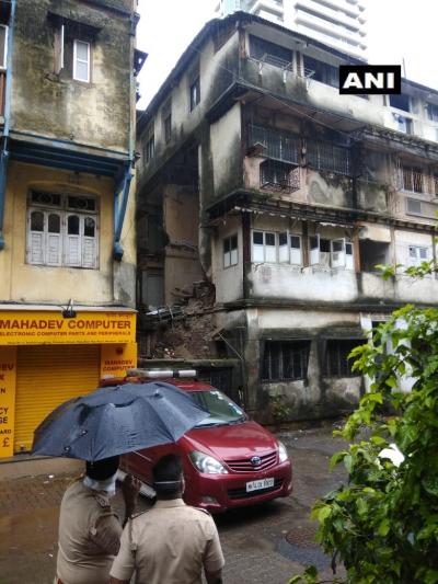 वहीं समाचार एजेंसी एएनआई ने एक तस्वीर जारी की है, जिसमें एक जर्जर मकान का एक हिस्सा बारिश की वजह से ढह गया। यह मकान ग्रांट रोड के पावला स्ट्रीट पर स्थित है। (फोटो साभार- ANI)