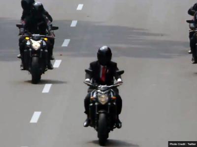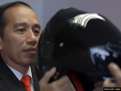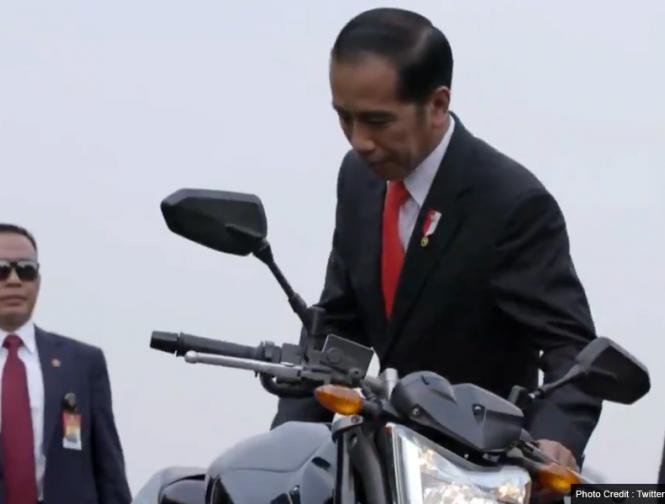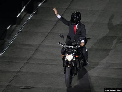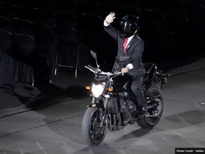 इंडोनेशिया के राष्ट्रपति जोको विदोदो 18वें एशियाई खेलों के उद्घाटन समारोह में बाइक से पहुंचे।