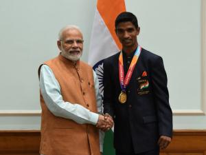 1 / 15पीएम मोदी ने 2018 के एशियाई पैरा खेलों के पदक विजेताओं से मिलकर बधाई दी2 / 15पीएम ने कहा खिलाड़ियों की सफलता में उनके मनोबल की अहम भूमिका3 / 15प्रधानमंत्री ने पदक विजेता खिलाड़ियों के कोचों की भी सराहना की4 / 15भारतीय खिलाड़ियों ने इस साल पैरा गेम्स में 72 पदक जीते हैं5 / 15भारतीय खिलाड़ियों ने इस साल 15 गोल्ड, 24 सिल्वर और 33 ब्रॉन्ज मेडल जीते6 / 15सरकार ने गोल्ड मेडल विजेताओं को 30 लाख रुपये दिए।7 / 15सिल्वर विजेताओं को 20 और ब्रॉन्ज मेडल विजेताओं को 10-10 लाख रुपये दिए गए8 / 15खेलमंत्री राज्यवर्धन सिंह राठौड़ ने खिलाड़ियों को देश का असली आइकन बताया।9 / 15राज्यवर्धन सिंह राठौड़ ने कहा कि पैरा खिलाड़ियों को सरकार का पूरा समर्थन हासिल है10 / 15खेल मंत्री ने कहा अब खिलाड़ियों को 2020 पैरालम्पिक पर ध्यान केंद्रित करना चाहिए।11 / 15पीएम ने एथलीटों से कहा कि वे अपना उत्साह बनाए रखें।12 / 15भारतीय खिलाड़ियों ने इस साल पैरा गेम्स में 72 पदक जीते हैं13 / 15भारतीय खिलाड़ियों ने इस साल 15 गोल्ड, 24 सिल्वर और 33 ब्रॉन्ज मेडल जीते14 / 15सरकार ने गोल्ड मेडल विजेताओं को 30 लाख रुपये दिए।15 / 15सिल्वर विजेताओं को 20 और ब्रॉन्ज मेडल विजेताओं को 10-10 लाख रुपये दिए गए।