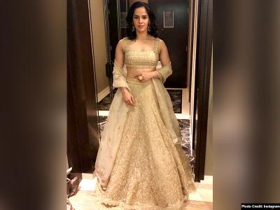 प्रियंका चोपड़ा और निक जोनस के रिसेप्शन में साइना नेहवाल गोल्डन कलर के लहंगे में नजर आईं।