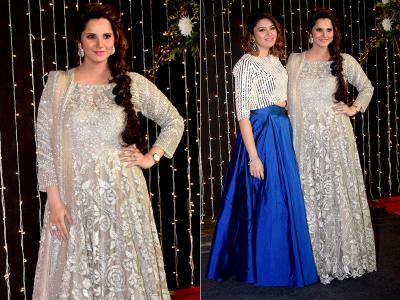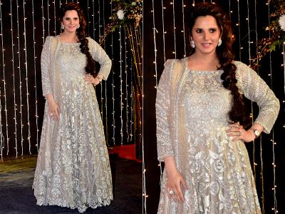 प्रियंका चोपड़ा और निक जोनस के रिसेप्शन में सानिया मिर्जा सिल्वर कलर के लहंगे में नजर आईं।