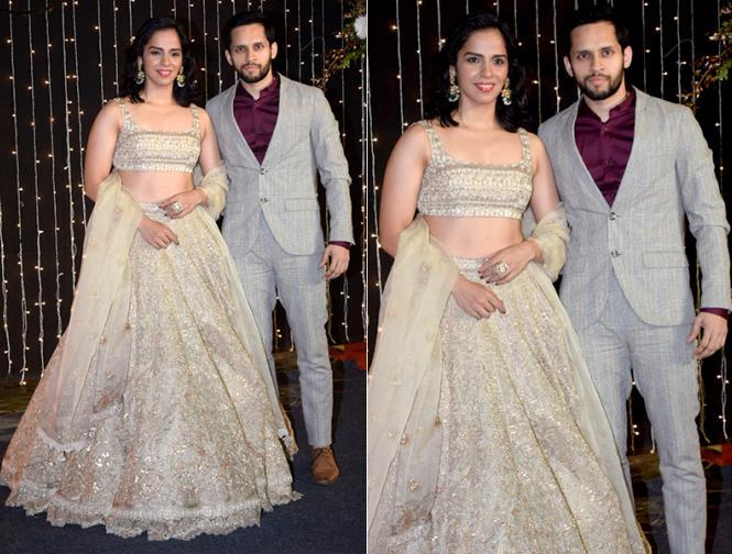 प्रियंका चोपड़ा और निक जोनस के रिसेप्शन में साइना नेहवाल पति परुपल्ली कश्यप के साथ पहुंची थीं।