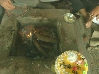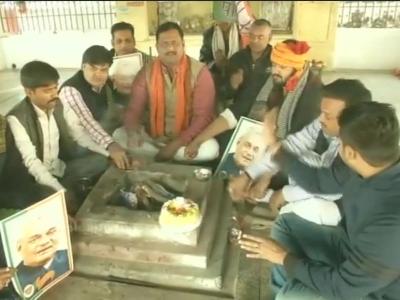यहां बाकायदे पुजारी बुलाकर कार्यकर्ताओं ने पूजा-पाठ कराया और उनके दीर्याघु की कामना की। (सभी तस्वीरेंः एएनआई से)