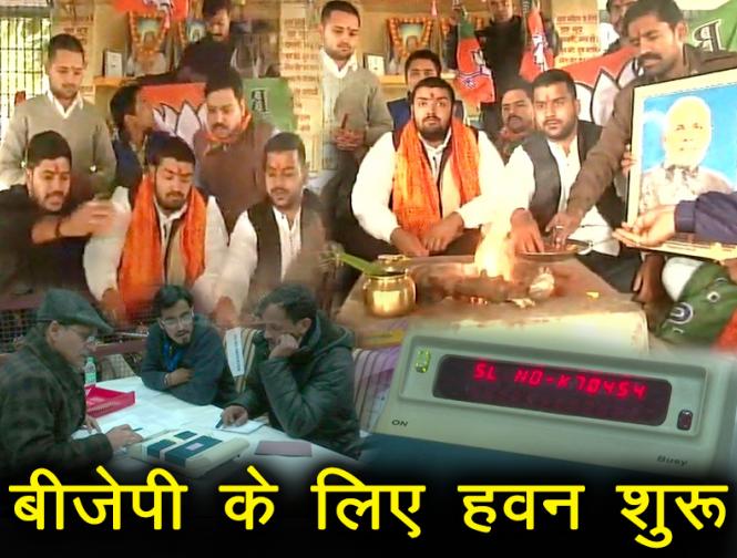 हवन करने बैठे बीजेपी कार्यकर्ता, देखें मतगणना की 10 तस्वीरें
