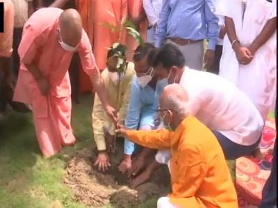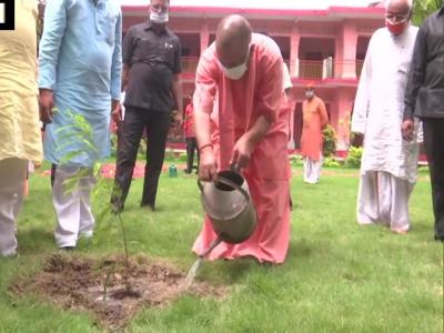 इसके बाद मुख्यमंत्री योगी आदित्यनाथ ने वृक्षारोपण किया। (फोटो: ANI)