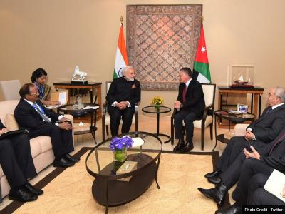 भारत और जॉर्डन के द्विपक्षीय संबंधों को लेकर बातचीत करते पीएम मोदी और द्वितीय किंग अब्दुल्ला