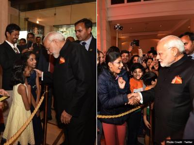 जॉर्डन में भारतीय समुदाय के लोगों से मिलते पीएम मोदी।
