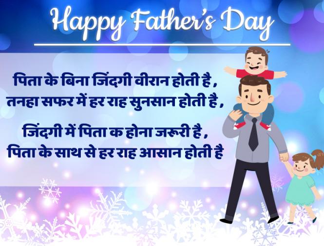 1) पिता के बिना जिंदगी वीरान होती है , तनहा सफर में हर राह सुनसान होती है , जिंदगी में पित क होना जरूरी है , पिता के साथ से हर राह आसान होती है
