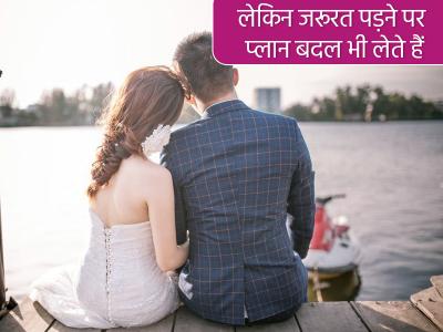 6) लेकिन जरूरत पड़ने पर प्लान बदल भी लेते हैं: अगर हम बनाए गए प्लान पर ही चलते रहें और कोई एक्सपेरिमेंट ना करें तो सब कितना बोरिंग लगने लगता है। परफेक्ट कपल्स वही हैं जो समय आने पर एक दूसरे को सही सलाह देते हैं और एक्सपेरिमेंट करते हुए चीजों को बदल लेते हैं।