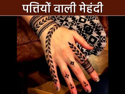 5) पत्तियों वाली मेहंदी: छोटी-छोटी पत्तियां बनाते हुए पूरे हाथों में लगी ये मेहंदी आजकल का ट्रेंडिंग डिजाइन है। यह डिजाईन हाथों से लेते हुए हथेलियों, कलाई और बाजू तक भी पहुंच जाता है लेकिन फिर भी हेवी लुक नहीं देता।