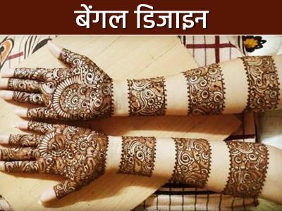 9) बेंगल डिजाइन: जिस तरह कलाई पर चूड़ियों की शेप आती है ठीक उसी तरह से मेहंदी का डिजाइन इस समय काफी ट्रेंड में है, ये डिजाइनर मेहंदी स्टाइल होता है