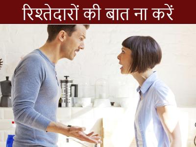 2) रिश्तेदारों की बात ना करें: दिन भर के काम के बाद अगर आप पार्टनर के पास रिश्तेदारों की शिकायतें या फिर किस रिश्तेदार से क्या बात हु ये लेकर जाएंगे तो चिड़-चिड़ाहट के अलावा आपको कुछ भी हासिल नहीं होगा। यह समय एक दूसरे से प्यार भरी बातें करने का होता है, ना कि इरिटेट करने का।
