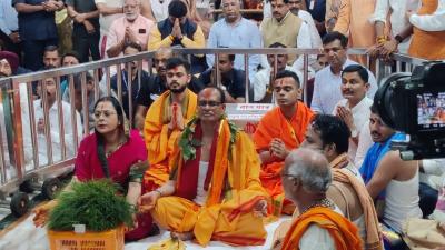 सवारी से पूर्व दोपहर में उज्जैन पहुंचे मुख्यमंत्री ने सपरिवार गृर्भगृह में धर्मपत्नी साधना सिंह एवं पुत्र कार्तिकेय एवं कुणाल के साथ भगवान श्री महाकालेश्वर का अभिषेक कर सबके कल्याण, स्वास्थ्य, सभी सुखमय रहे इस हेतु से संपूर्ण सृष्टि के कल्याण के साथ-साथ जीव चराचर के कल्याण की कामना की।
