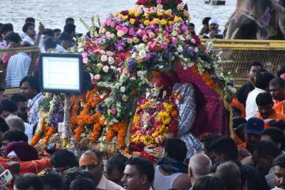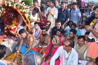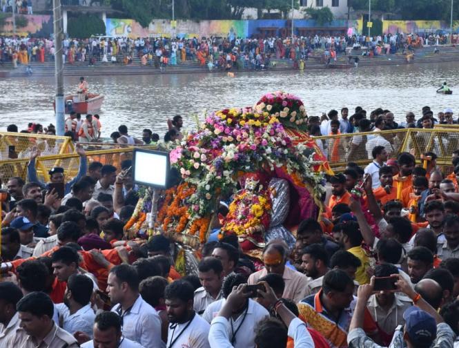 पूजन पुजारी अभिषेक शर्मा(बाला गुरु), पुरोहित सुभाष शर्मा ने संपन्न करवाई।सवारी के दौरान मुख्यमंत्री पालकी के घेरे में सपरिवार चल रहे थे।इस दौरान उन्होंने श्रद्धालुओं का अभिवादन स्वीकार किया।सवारी परंपरागत मार्ग से रामघाट पहुंची यहां मुख्यमंत्री ने सपत्नीक भगवान का शिप्रा जल से अभिषेक कर पूजन अर्चन किया।