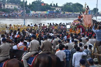 एएसपी आकाश भूरिया ने बताया कि तीसरी सवारी के दौरान सुरक्षा बतौर पुलिस ने आसमान से तीन ड्रोन उड़ाकर से पूरे समय सवारी एवं पालकी पर नजर रखी।इसके साथ ही करीब एक हजार पुलिस कर्मी एवं अधिकारी का फोर्स सवारी मार्ग एवं विभिन्न स्थलों पर तैनात किया गया था।नगर सुरक्षा समिति के तीन सौ से अधिक सदस्यों को भी विभिन्न् स्थलों पर श्रद्धालुओं की सुरक्षा व्यवस्था में लगाया गया था। (सभी फोटो लोकमत)
