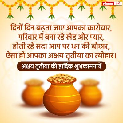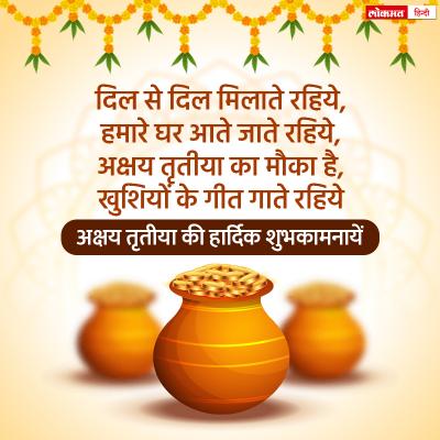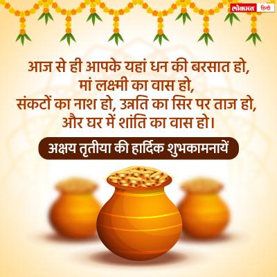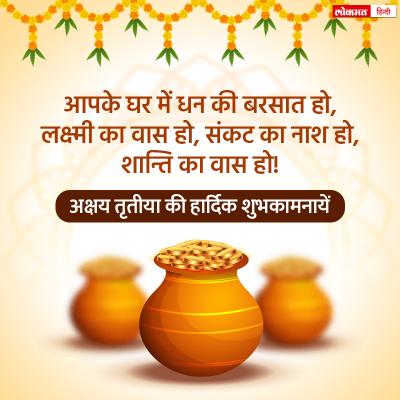 आज से ही आपके यहां धन की बरसात हो, मां लक्ष्मी का वास हो, संकटों का नाश हो, उन्नति का सिर पर ताज हो, और घर में शांति का वास हो। अक्षय तृतीया की हार्दिक शुभकामनायें