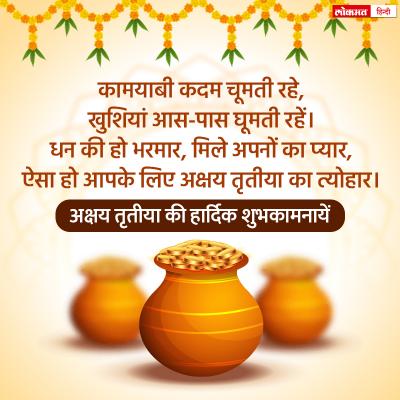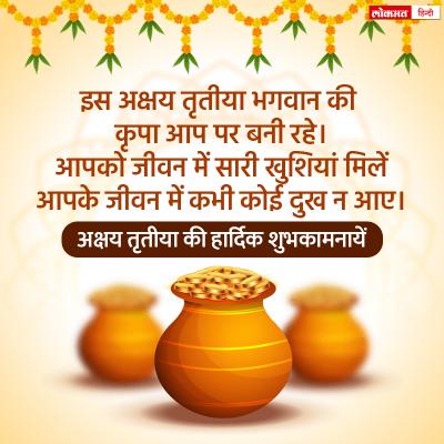 इस बार अक्षय तृतीया का पर्व 22 अप्रैल, शनिवार को पड़ेगा। हिंदू पंचांग के अनुसार, वैशाख मास के शुक्ल पक्ष की तृतीया अक्षय तृतीया कहलाती है। शास्त्रों में इसे मां लक्ष्मी का दिन भी कहा जाता है।इस दिन मां लक्ष्मी, भगवान विष्णु और कुबेर जी की पूजा की जाती है। मान्यता है कि इस दिन सोना खरीदने से मां लक्ष्मी की कृपा हमेशा बनी रहती है। इस मौके पर आप अपनों को इस प्रकार बधाई संदेश भेज सकते है।