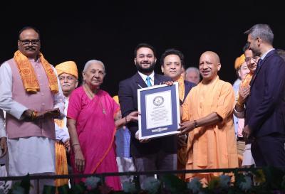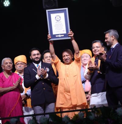 बयान में कहा गया कि ‘गिनीज बुक ऑफ वर्ल्ड रिकॉर्ड्स’ के प्रतिनिधियों द्वारा कीर्तिमान रचने की घोषणा के साथ ही पूरी अयोध्या 'जय श्री राम' के उद्घोष से गुंजायमान हो उठी।
