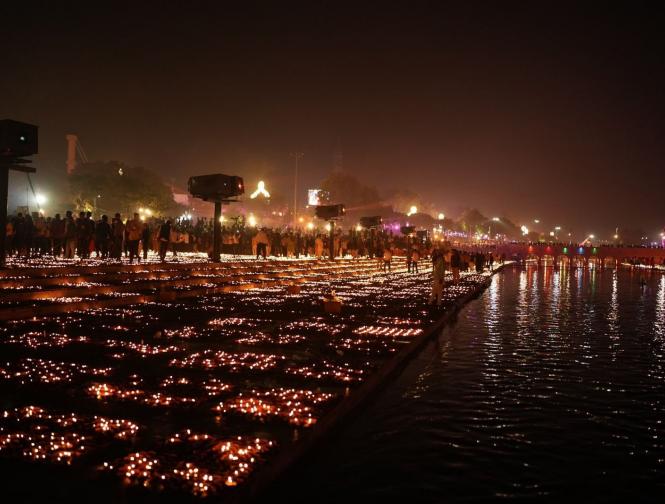उत्तर प्रदेश की राज्यपाल आनंदीबेन पटेल और मुख्यमंत्री योगी आदित्यनाथ की उपस्थिति में भगवान श्रीराम की जन्मस्थली अयोध्या में शनिवार की शाम राम की पैड़ी पर 22 लाख से अधिक दीप प्रज्वलित किये गये, जो ‘गिनीज बुक ऑफ वर्ल्ड रिकॉर्ड्स’ के मुताबिक विश्व कीर्तिमान है। एक आधिकारिक बयान में यह दावा किया गया है।