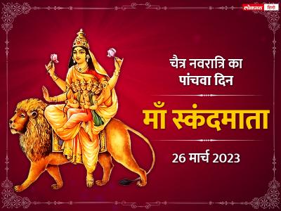 पांचवा दिन- माँ स्कंदमाता (26 मार्च): नवरात्र का पांचवा दिन पंचमी तिथि कहलाती है। इस तिथि पर देवी दुर्गा के स्कंदमाता स्वरूप का दर्शन पूजन होता है। स्कंद कार्तिकेय की माता होने के कारण ही देवी के इस स्वरूप को स्कंदमाता नाम मिला है। देवी के इस स्वरूप की आराधना से जहां व्यक्ति की संपूर्ण सद्कामनाएं पूर्ण होती हैं वहीं उसके मोक्ष का मार्ग भी सुगम्य हो जाता है।