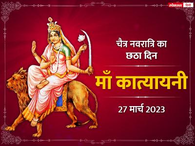 छठवां दिन- माँ कात्यायनी (27 मार्च): नवरात्र का छठा दिन षष्ठी तिथि कहलाता है। इस दिन देवी के कात्यायनी स्वरूप की पूजा होती है। देवी दुर्गा के छठे स्वरूप का दर्शन साधकों को सद्गति प्रदान करने वाला कहा गया है। पौराणिक कथा के अनुसार कात्यायनी माता ने ही महिषासुर और शुंभ-निशुंभ जैसे आतातायी राक्षसों का वध किया था। माता कात्यायनी की पूजा से जीवन से जुड़े ज्ञात-अज्ञात शत्रुओं का भय दूर होता है.