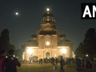दिल्ली: क्रिसमस के अवसर पर सेक्रेड हार्ट कैथेड्रल चर्च को जगमगाती रोशनी से सजाया गया।