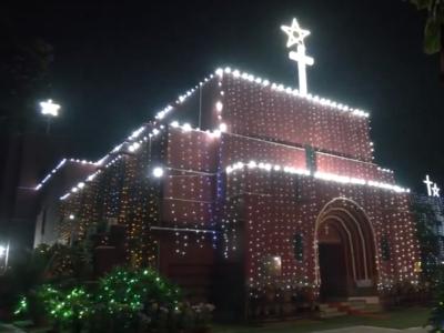 बिहार: क्रिसमस के अवसर पर पटना के कुर्जी चर्च को जगमगाती रोशनी से सजाया गया।