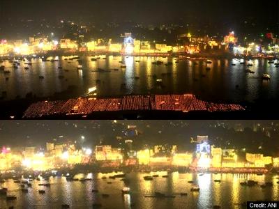 एक सरकारी बयान के मुताबिक देव दीपावली पर काशी नगरी में लगभग 21 लाख दीप प्रज्वलित किए गए। काशी के अर्धचंद्राकार घाटों पर ही 12 लाख से अधिक दीप जलाए गए। इनमें एक लाख दीप गाय के गोबर से बने थे। दीप पश्चिमी तट घाटों पर और पूर्वी तट की रेत पर जलाये गए थे। काशी के कुंडों, सरोवरों, गंगा-गोमती तट पर स्थित मार्कण्डेय महादेव, वरुणा नदी के शास्त्री घाट आदि स्थानों को लाखों दीयों से जगमग किया गया। बयान के मुताबिक यह पहला मौका है, जब उत्तर प्रदेश के मुख्यमंत्री योगी आदित्यनाथ की अगुआई में इतनी बड़ी संख्या में कई देशों के राजनायिकों ने इस अलौकिक, अद्भुत और अविस्मरणीय क्षण को अपनी आंखों के सामने देख खुद को गौरवान्वित महसूस किया। राज्य सरकार इस वर्ष से देव दीपावली को प्रांतीय मेले का दर्जा दे चुकी है। इससे देव दीपावली की आभा पूरी दुनिया में फ़ैल रही है। गोरक्षपीठाधीश्वर और मुख्यमंत्री योगी आदित्यनाथ ने देव दीपावली पर पहला दीपक जलाकर इसे आरंभ किया । सूर्यास्त के साथ ही उत्तरवाहिनी जाह्नवी के तट पर लाखों दीपों ने अद्भुत और अलौकिक छटा बिखेरी। काशी के धनुषाकार 85 घाटों पर मानो आकाशगंगा के सितारे उतर आए हों। पूरी काशी दीपों की रोशनी में नहाई दिख रही थी।