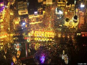 1 / 6उत्तर प्रदेश के मुख्यमंत्री योगी आदित्यनाथ ने सोमवार को कहा कि काशी के लोकप्रिय सांसद और प्रधानमंत्री नरेन्द्र मोदी के कारण देव दीपावली का कार्यक्रम न केवल काशी, बल्कि देश एवं दुनिया का आध्यात्मिक समारोह (स्पिरिचुअल इवेंट) बन गया है। 2 / 6उन्होंने कहा कि दो वर्ष पहले काशी की देव दीपावली में प्रधानमंत्री मोदी स्वयं सहभागी बने थे और आज देव दीपावली में लाखों दीप जल रहे हैं। उनका कहना था कि इस कार्यक्रम के साक्षी दुनिया के 70 देशों के राजनयिक बने हैं यानी प्रधानमंत्री के कारण 70 देशों की उपस्थिति एक साथ काशी में हुई है। एक सरकारी बयान के मुताबिक आदित्यनाथ ने कहा ,‘‘ काशी अविनाशी है। यह देवाधिदेव महादेव बाबा विश्वनाथ का धाम है।3 / 6मनुष्य अमावस्या को दीपावली मनाते हैं तो पूर्णिमा की तिथि देवताओं की दीपावली है। देव दीपावली आज के दिन कई सौ वर्षों से यहां की परंपरा का हिस्सा रहा है।’’ उन्होंने प्रधानमंत्री के प्रति आभार जताते हुए बाबा विश्वनाथ के पावन धाम में मां गंगा के सानिध्य में सभी राजनयिकों का स्वागत किया। 4 / 6महादेव की काशी के घाटों पर सोमवार की सांझ की बेला में कार्तिक पूर्णिमा पर जब 21 लाख दीप एक साथ जले तो यहां देवलोक सा दृश्य सामने आ गया। कार्तिक मास की आखिरी सांझ में अद्भुत, अलौकिक, अनुपम छटा देख इस पल के साक्षी बने लोगों का रोम-रोम पुलकित हो उठा। मान्यता है कि काशी भगवान शंकर के त्रिशूल पर बसी है। शिव की काशी के आंगन में सोमवार को देव दीपावली मनायी गयी। इसके साक्षी देश-विदेश के आम नागरिकों के साथ ही 70 देशों के राजदूत, 150 विशेष अतिथि (डेलीगेट) और उनके परिवारजन बने। 5 / 6एक सरकारी बयान के मुताबिक देव दीपावली पर काशी नगरी में लगभग 21 लाख दीप प्रज्वलित किए गए। काशी के अर्धचंद्राकार घाटों पर ही 12 लाख से अधिक दीप जलाए गए। इनमें एक लाख दीप गाय के गोबर से बने थे। दीप पश्चिमी तट घाटों पर और पूर्वी तट की रेत पर जलाये गए थे। काशी के कुंडों, सरोवरों, गंगा-गोमती तट पर स्थित मार्कण्डेय महादेव, वरुणा नदी के शास्त्री घाट आदि स्थानों को लाखों दीयों से जगमग किया गया। बयान के मुताबिक यह पहला मौका है, जब उत्तर प्रदेश के मुख्यमंत्री योगी आदित्यनाथ की अगुआई में इतनी बड़ी संख्या में कई देशों के राजनायिकों ने इस अलौकिक, अद्भुत और अविस्मरणीय क्षण को अपनी आंखों के सामने देख खुद को गौरवान्वित महसूस किया। राज्य सरकार इस वर्ष से देव दीपावली को प्रांतीय मेले का दर्जा दे चुकी है। इससे देव दीपावली की आभा पूरी दुनिया में फ़ैल रही है। गोरक्षपीठाधीश्वर और मुख्यमंत्री योगी आदित्यनाथ ने देव दीपावली पर पहला दीपक जलाकर इसे आरंभ किया । सूर्यास्त के साथ ही उत्तरवाहिनी जाह्नवी के तट पर लाखों दीपों ने अद्भुत और अलौकिक छटा