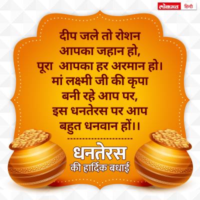 दीप जले तो रोशन आपका जहान हो, पूरा आपका हर अरमान हो। मां लक्ष्मी जी की कृपा बनी रहे आप पर, इस धनतेरस पर आप बहुत धनवान हों।। Happy Dhanteras 2022
