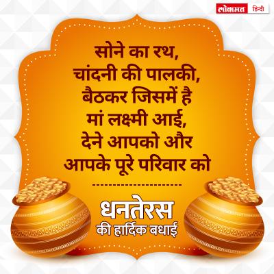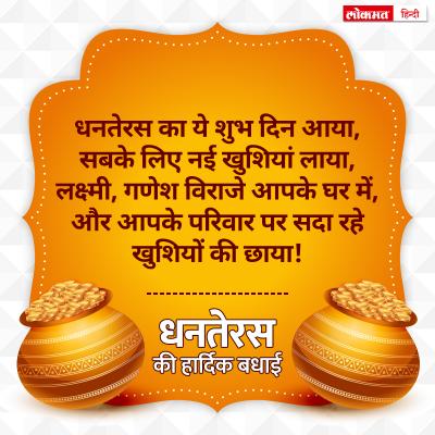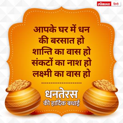 आपके घर में धन की बरसात हो, शान्ति का वास हो, संकटों का नाश हो, लक्ष्मी का वास हो, हैप्पी धनतेरस 2022
