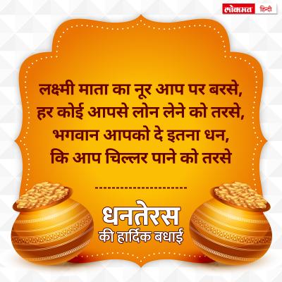 लक्ष्मी माता का नूर आप पर बरसे, हर कोई आपसे लोन लेने को तरसे, भगवान आपको दे इतना धन, कि आप चिल्लर पाने को तरसे हैप्पी धनतेरस!