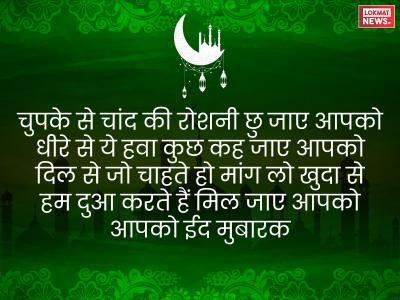चुपके से चांद की रोशनी छु जाए आपको धीरे से ये हवा कुछ कह जाए आपको दिल से जो चाहते हो मांग लो खुदा से हम दुआ करते हैं मिल जाए आपको आपको ईद मुबारक