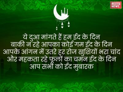 ये दुआ मांगते हैं हम ईद के दिन बाकी न रहे आपका कोई गम ईद के दिन आपके आंगन में उतरे हर रोज खुशियों भरा चांद और महकता रहे फूलों का चमन ईद के दिन आप सभी को ईद मुबारक