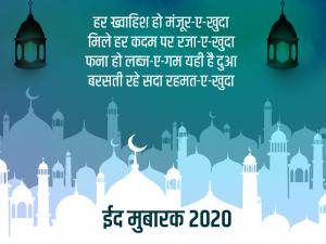 1 / 8हर ख्वाहिश हो मंजूर-ए-खुदा मिले हर कदम पर रजा-ए-खुदा फना हो लब्ज-ए-गम यही हैं दुआ बरसती रहे सदा रहमत-ए-खुदा2 / 8रात का नया चांद मुबारक, चांद की चांदनी मुबारक, फलक को सितारे मुबारक, सितारों को बुलंदी मुबारक, और आपको ईद मुबारक3 / 8चुपके से चांद की चांदनी छू जाए आपको धीरे से ये हवा कुछ कह जाए आपको दिल से जो चाहते हो मांग लो खुदा से हम दुआ करते हैं मिल जाए वो आपको4 / 8मुबारक नाम है तेरा, मुबारक ईद हो तुझको, जिसे तू देखना चाहे, उसी की दीद हो तुझको सभी को ईद मुबारक5 / 8ज़िन्दगी के हर पल खुशियों से कम न हो, आप के हर दिन ईद के दिन से कम न हो, ऐसा ईद का दिन आपको हमेशा नसीब हो!6 / 8हवा की खुशबू मुबारक फिज़ा को मौसम मुबारक दिलों को प्यार मुबारक आपको हमारी तरफ से ईद मुबारक7 / 8अल्लाह आपको ईद के मुक्कदस मौके पर तमाम खुशियां अता फरमाएं और आपकी इबादत कबूल करे8 / 8ईद का त्यौहार आया है खुशियां अपने संग लाया है खुदा ने दुनिया को महकाया है देखो फिर से ईद का त्यौहार आया है आप सभी को दिल से ईद मुबारक