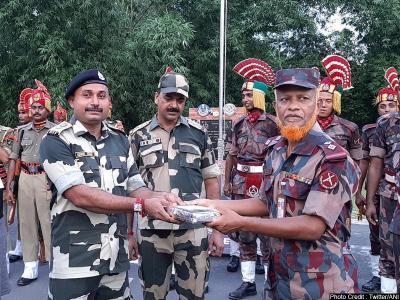 भारत-बांग्लादेश सीमा पर फुलबारी में सीमा सुरक्षा बल (बीएसएफ) ने बांग्लादेश के बॉर्डर गार्ड्स बांग्लादेश (बीजीबी) को मिठाईयां भेंट की।