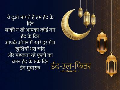 ये दुआ मांगते हैं हम ईद के दिन बाकी न रहे आपका कोई गम ईद के दिन आपके आंगन में उतरे हर रोज खुशियों भरा चांद और महकता रहे फूलों का चमन ईद के एक दिन ईद मुबारक