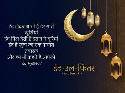 ईद लेकर आती है ढेर सारी खुशियां ईद मिटा देती है इंसान में दूरियां ईद है खुदा का एक नायाब तबारक और हम भी कहते हैं आपको 'ईद मुबारक'