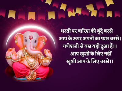 9. धरती पर बारिश की बूंदे बरसे आप के ऊपर अपनों का प्यार बरसे। गणेशजी से बस यही दुआ हैं।। आप खुशी के लिए नहीं खुशी आप के लिए तरसे।।